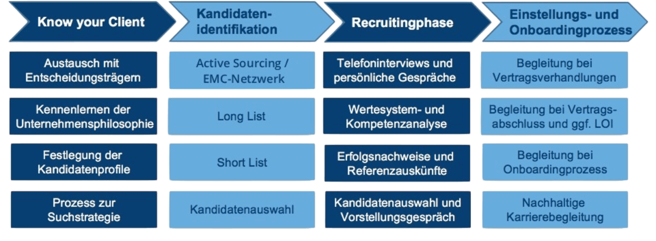 Ergänzend zur Personalvermittlung begleitet EMC gezielt Unternehmenstransaktionen, die auf nachhaltiges Vertriebswachstum ausgerichtet sind. Zudem unterstützt EMC Banken, Versicherungen und Finanzdienstleister bei der strategischen Vertriebsentwicklung – sowohl in den Heimatmärkten Schweiz und Deutschland als auch in angrenzenden europäischen Ländern.